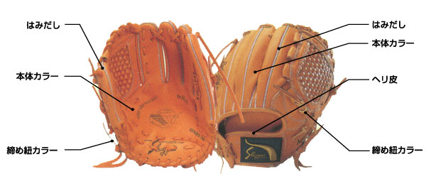 1 はみだし 投手用・野手用に関係なく、はみだしは本体と同系色または皮の自然色のみ使用可能。玉はみの場合は本体と同色のみ使用可能。